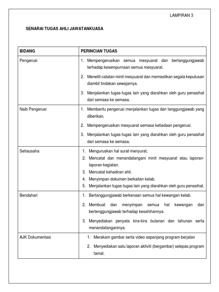 Ahli jawatankuasa atau ahli jawatan kuasa. Mendapatkan senarai nama ahli jawatan kuasa serta para pegawai daripada ahli jawatan kuasa yang terlibat untuk. Drug abuse and other ills penyalahgunaan dadah serta penyakit sosial yg lain. Ahli Peranan dan tanggungjawab Ahli Jawatankuasa yang terlantik bertanggungjawab untuk memberikan buah fikiran yang bernas untuk memajukan pertubuhan atau untuk menjayakan projek.