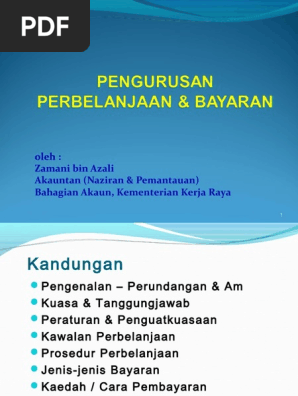 Sebagai usaha Pejabat Kewangan dan Perbendaharaan Negeri Negeri Sembilan menyediakan kemudahan navigasi yang baik dan mesra pengguna laman web ini turut mengambilkira mereka yang lebih selesa untuk melayari laman web ini dengan bahasa-bahasa lain selain Bahasa Malaysia dan Bahasa Inggeris. Berasaskan kuasa ini Ketua Jabatan boleh mewakilkan kuasa kepada pegawai bawahannya AP101 bagi mengurus memperaku dan meluluskan bayaran. Lain-lain dokumen tambahan yang diperlukan.