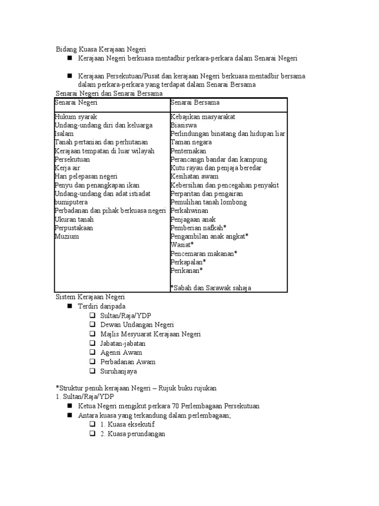 An kerajaan Negeri berkuasa mentadbir bersama dalam perkara-perkara yang terdapat dalam Senarai Bersama Senarai Negeri dan Senarai Bersama Senarai Negeri Senarai Bersama Hukum syarak Undang-undang diri dan. HUBUNGAN ANTARA KERAJAAN PUSAT DENGAN KERAJAAN NEGERI SERTA KERAJAAN TEMPATAN.